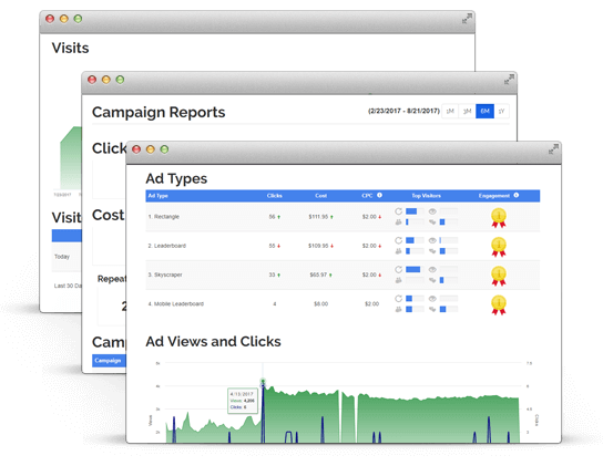 AdGuru’s powerful web stats offer a unique view of your website’s visitors: know which marketing efforts are working and which ones you need to end right now!
