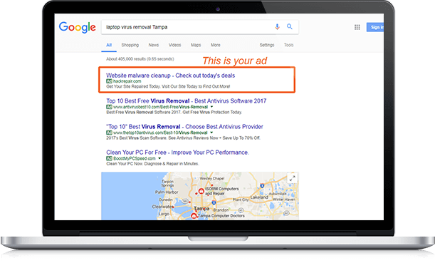 AdGuru helps you build a marketing campaign to get your business found on Google, Yahoo, Bing, and many other websites. The number of sites you will appear on depends on your advertising budget. After you build your campaign AdGuru takes care of the rest and will continually update you on the status of your campaign.